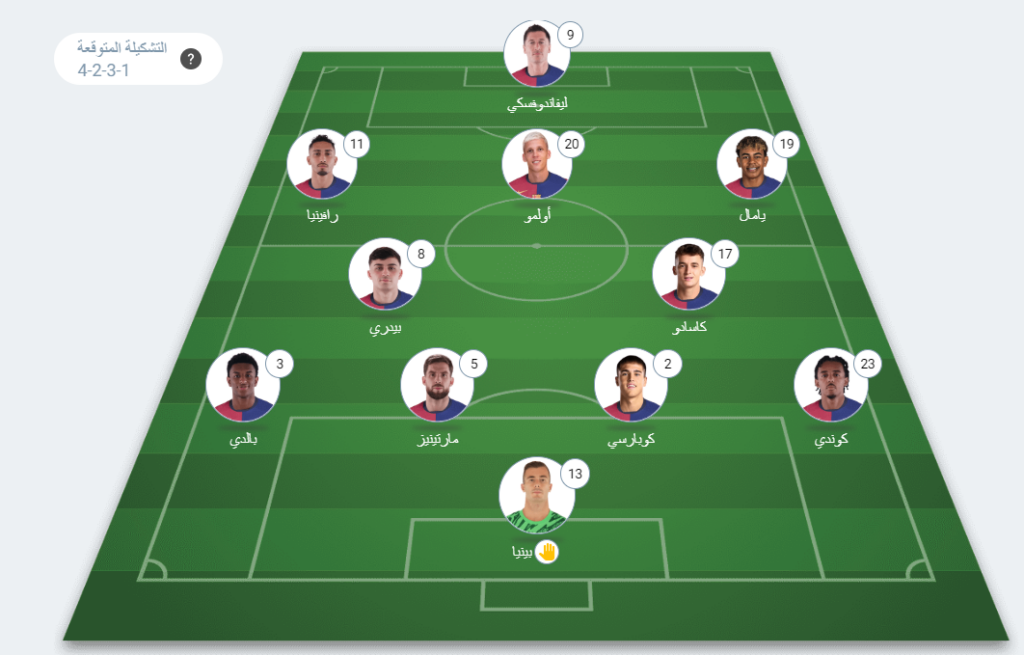 - خط الوسط الهجومي: لامين يامال، داني أولمو، رافينيا.