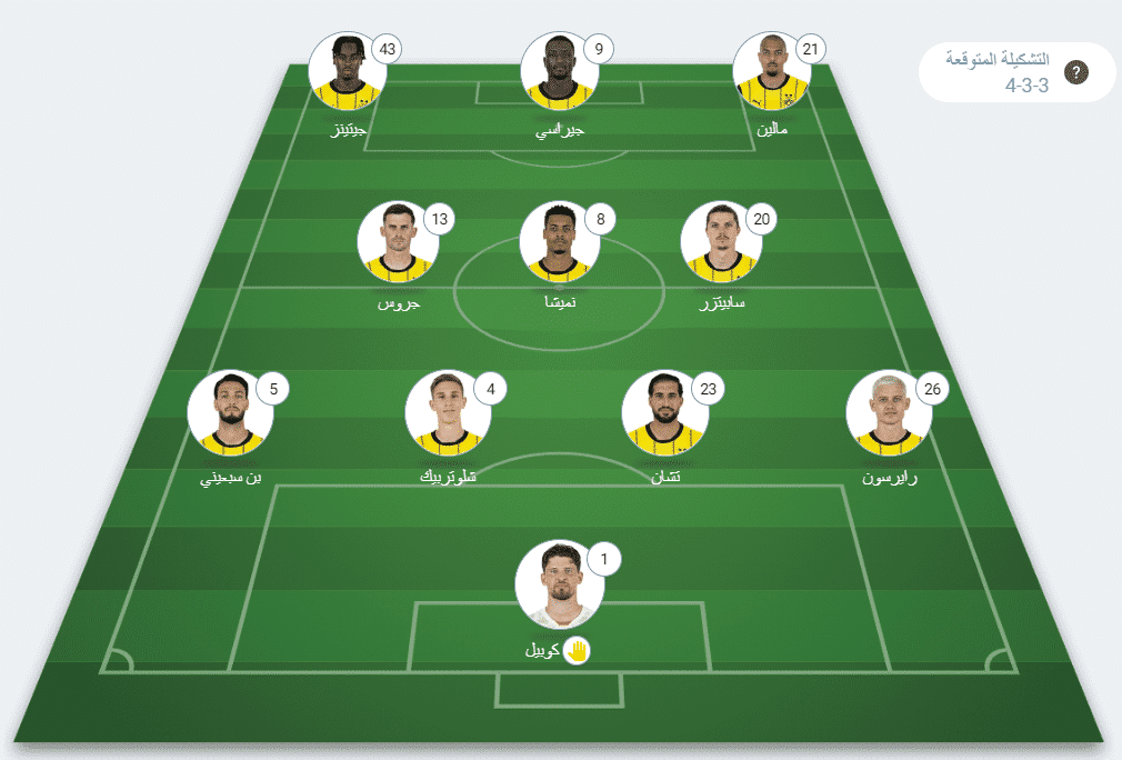 ومن المقرر أن تنطلق صافرة المباراة عند تمام الساعة 11:00 مساءً بتوقيت مكة المكرمة، و10:00 مساءً بتوقيت القاهرة، على ملعب “سيجنال إيدونا بارك” بمدينة دورتموند الألمانية.