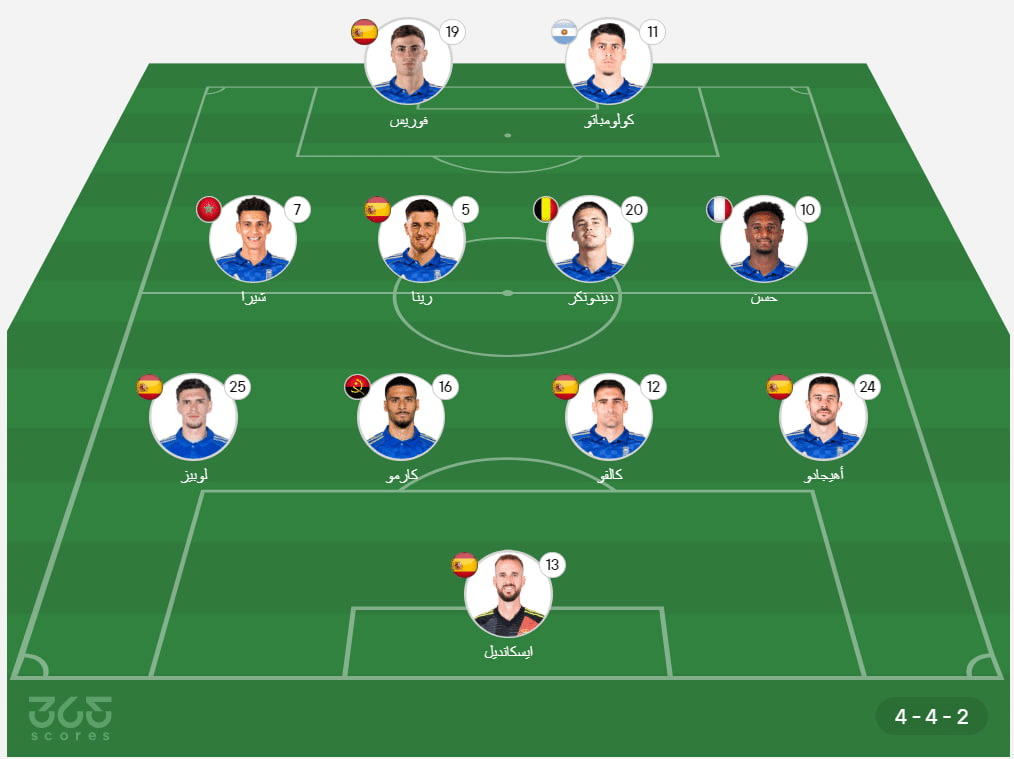 • خط الدفاع: خافي لوبيز، ديفيد كارمو، داني كالفو، لوكاس أهيجادو.