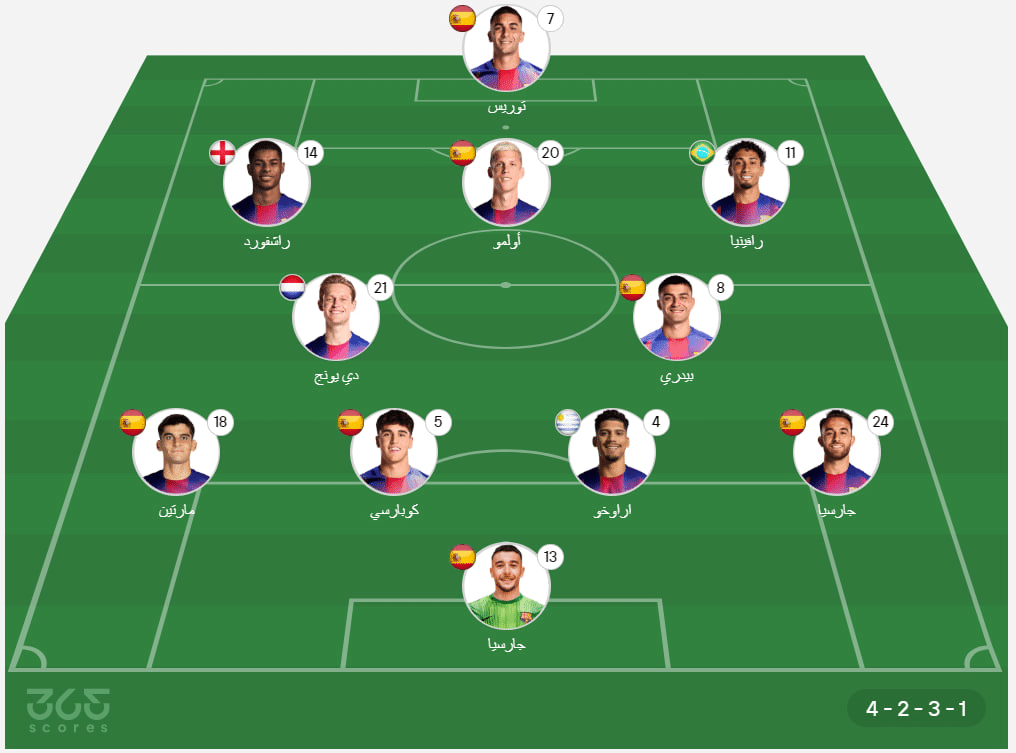 • خط الوسط الدفاعي: فرينكي دي يونج، بيدري.