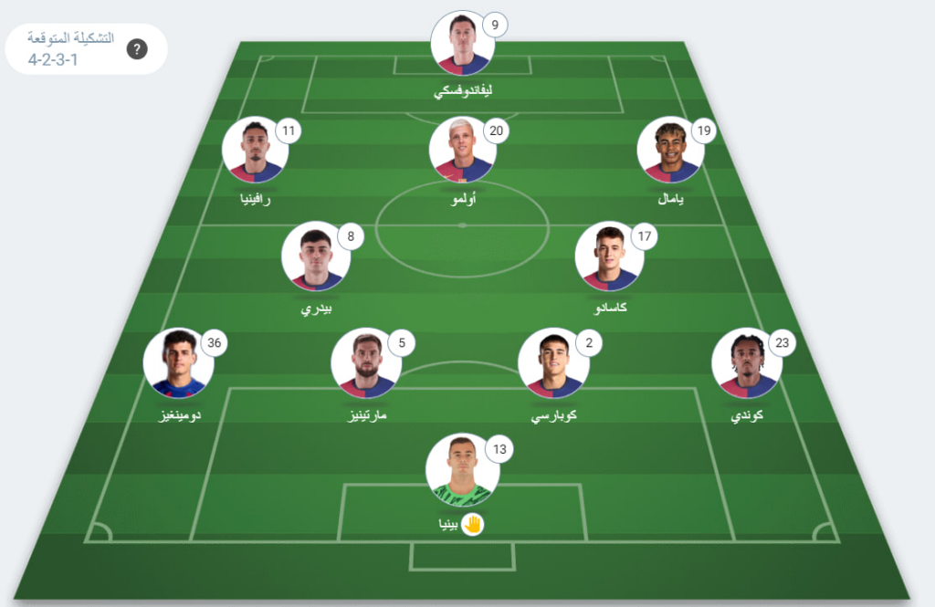 خط الوسط الهجومي: لامين يامال، داني أولمو، رافينيا.