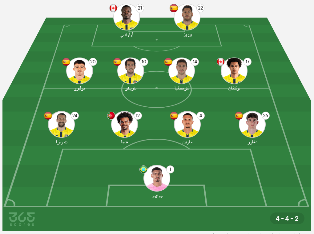 - خط الدفاع: الفونسو بيدرازا، ريناتو فيجا، رافا مارين، باو نافارو.
