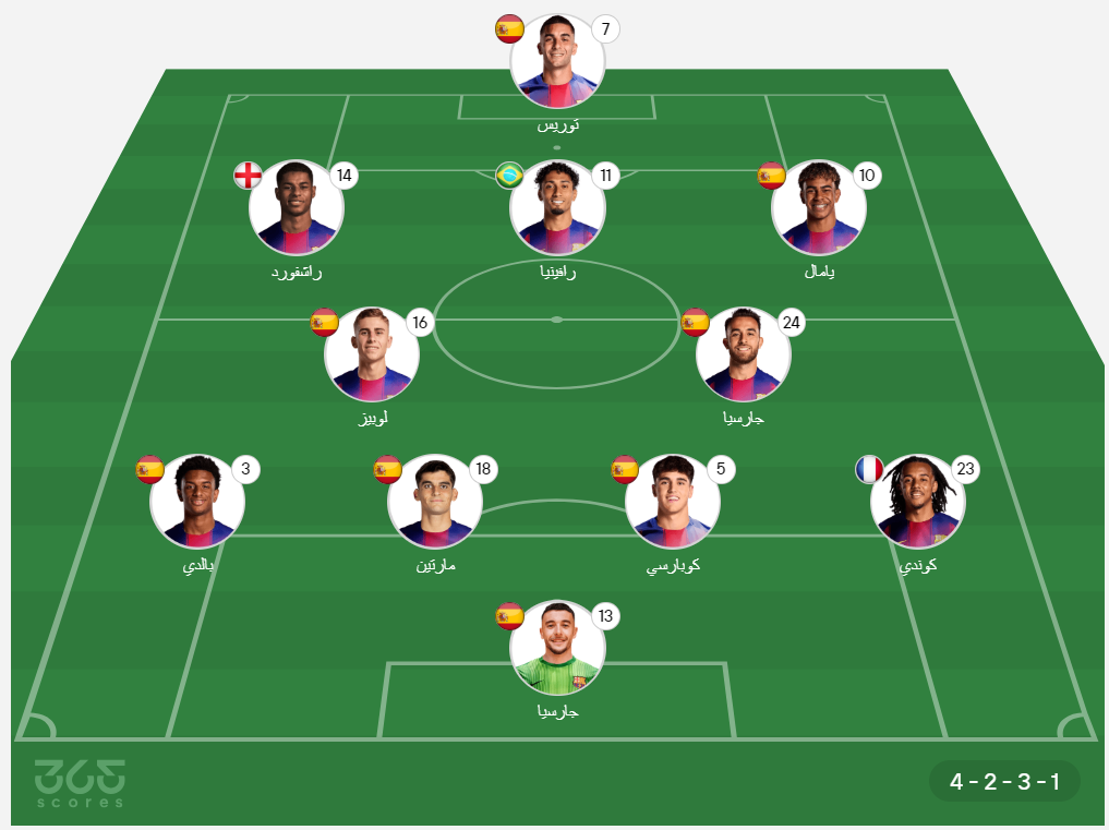 - خط الوسط الهجومي: ماركوس راشفورد، رافينيا، لامين يامال.