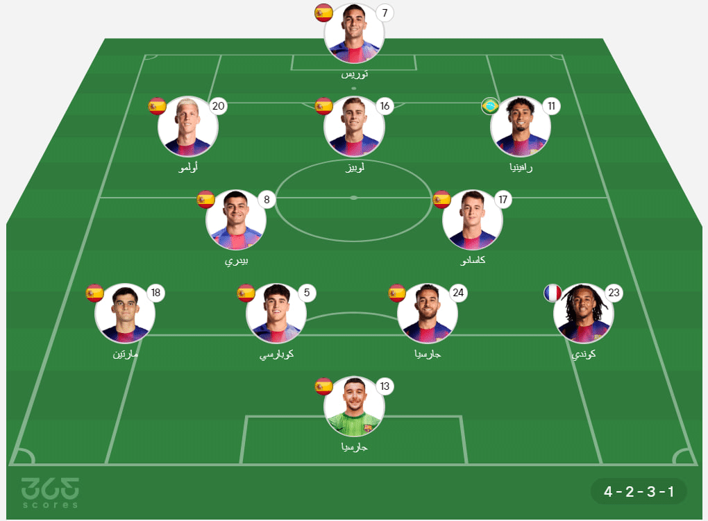 - خط الوسط الدفاعي: بيدري، مارك كاسادو.