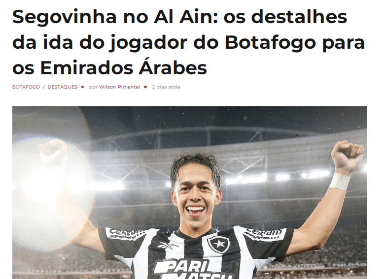 ووفقا لما ذكرته شبكة RTI Esporte، فأن نادي العين سيستعير ماتياس سيجوفيا من صفوف بوتافوجو حتى يونيو 2025.