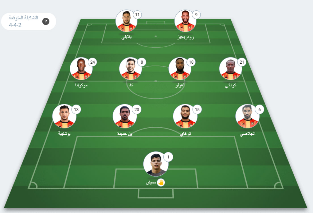 - خط الدفاع: حمزة الجلاصي، محمد توغاي، محمد أمين بن حميدة، رائد بوشنيبة.