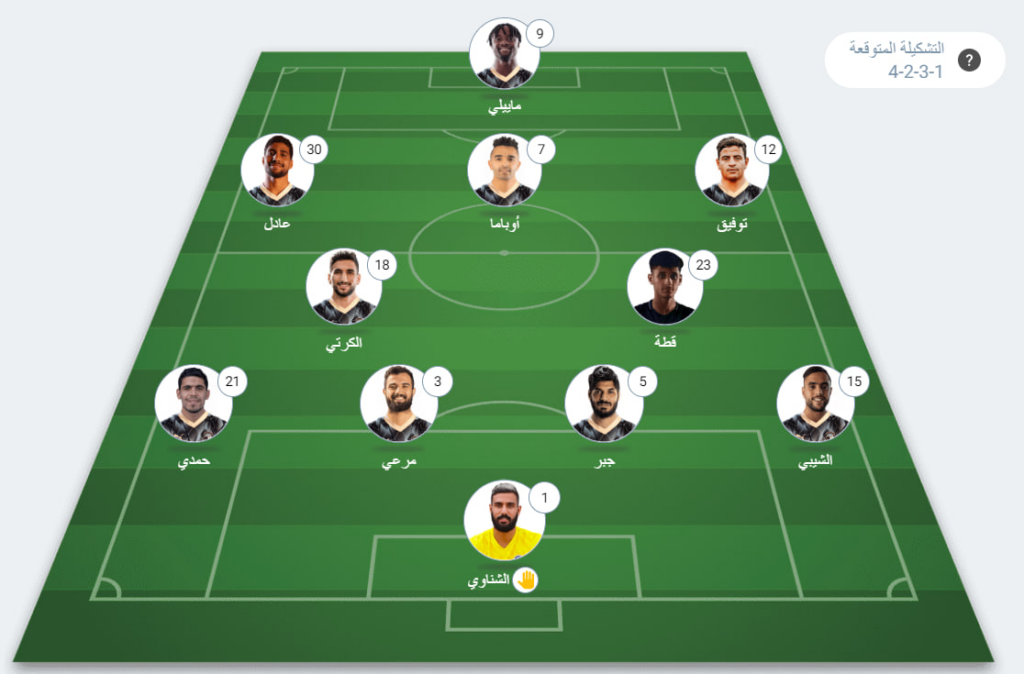 - خط الوسط الدفاعي: أحمد عاطف قطة، وليد الكرتي.