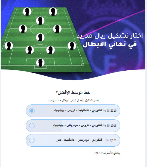 سنقوم بطرح مجموعة اختيارات بداية من حراسة المرمى وخط الدفاع والوسط وصولًا إلى خط الهجوم بالكامل، وسنسمح للمتابعين بالتصويت لاختيار لاعبي كل خط في التشكيل لمدة يوم.
