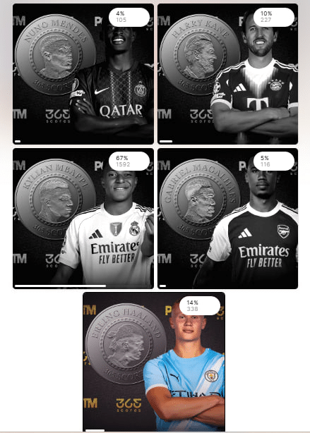 | 2 | كيليان مبابي (95) | إرلينج هالاند (95) | كيليان مبابي (96.75) |