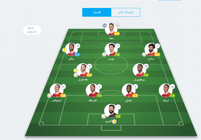 كان محمد صلاح، على رأس التشكيل الأساسي للفريق، لكنه غادر الملعب في الدقيقة 73 وحل الكولومبي لويس دياز بدلًا منه حيث قدم صلاح، اداءً متراجعًا في مباراة اليوم، أمام كريستال بالاس، قبل أن يخرج من الملعب.