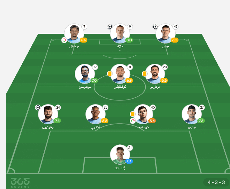 ظهر عمر مرموش في تشكيل مانشستر سيتي منذ بداية اللقاء، وذلك كأول مباراة رسمية له مع رفاق المدرب الإسباني بيب جوارديولا.