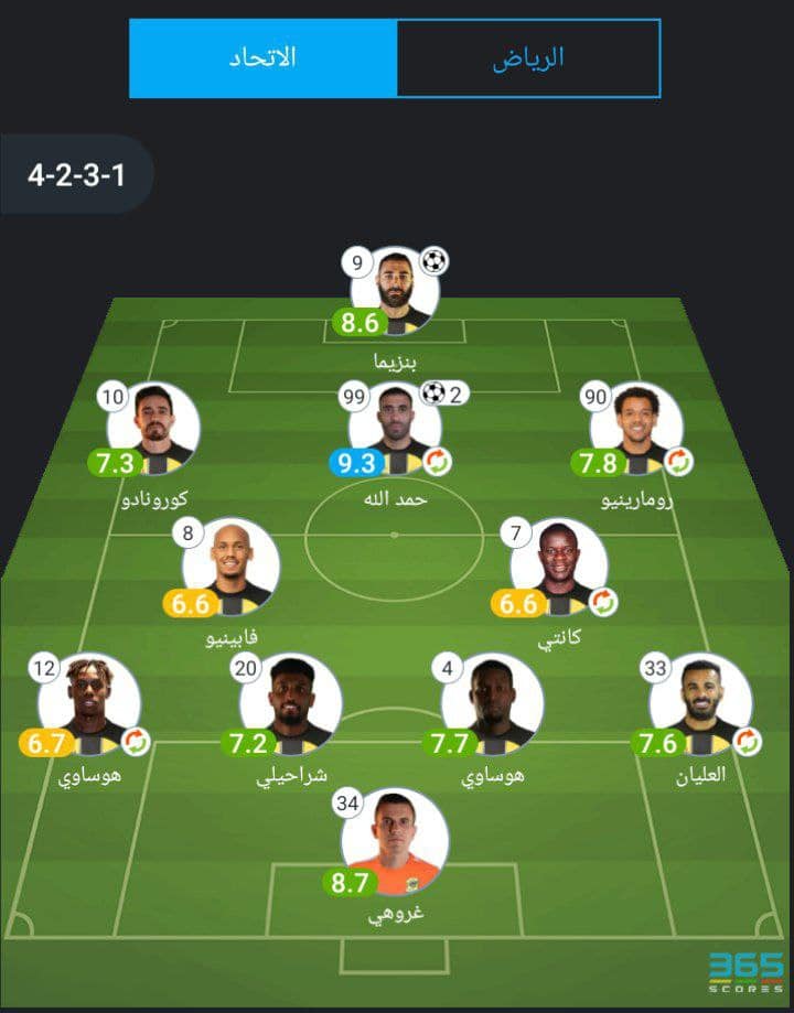 خط الهجوم: بنزيما 8.6 – حمد الله 9.3