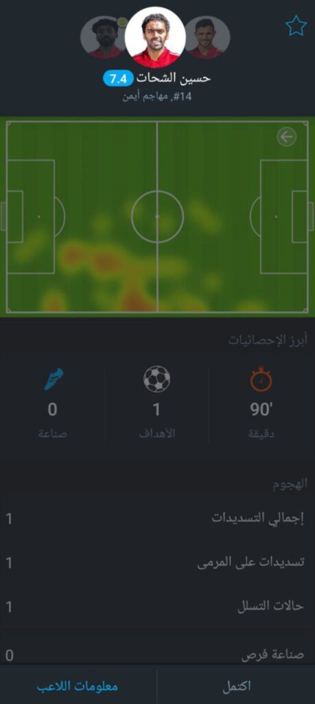 وكان حسين الشحان قد نجح في خطف هدف الفوز لصالح الشياطين الحمر في المباراة وقاد فريقه للصعود للنهائي البطولة.