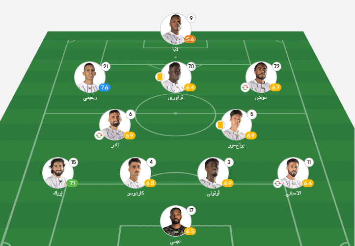 تقييم لاعبي العين وشباب الأهلي في الدوري الإماراتي 2024/2025