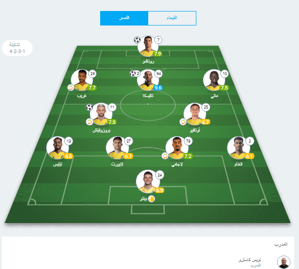 خط الهجوم: ساديو ماني 7.5 – كريستيانو رونالدو 7.9 – عبدالرحمن غريب 7.7