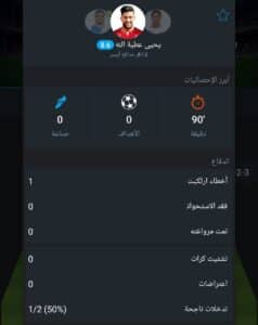 سجل الظهير الأيسر للوداد يحيى عطية الله أفضل تقييم في لقاء الترجي وبلغ 8.6، كما بلغت نسبة تدخلاته الناجحة 50 بالمائة، وتمريراته الصحيحة نسبة 80 بالمائة.