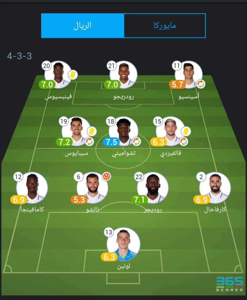 خط الهجوم: فينيسيوس جونيور 7، رودريجو 7، ماركو أسينسيو 5.7.