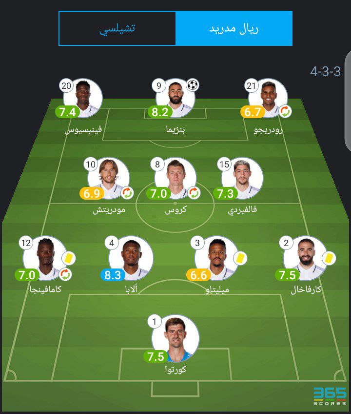 خط الوسط: فالفيردي 7.3 – كروس 7 – مودريتش 6.9