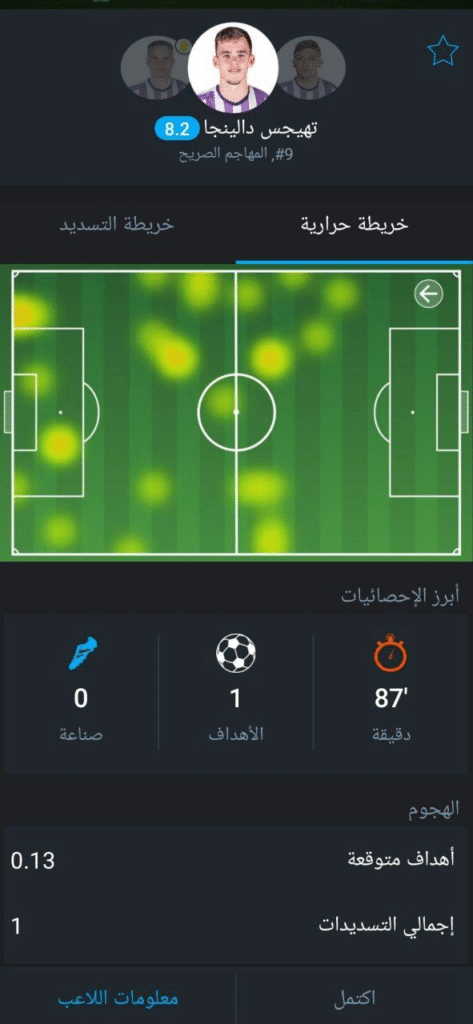 ونجح تهيجس دالينجا لاعب فريق تولوز، في حصد أعلى نسبة تقييم بين لاعبي الفريقين، بنسبة 8.2، بعدما سجل هدفًا في فوز فريقه بثلاثية، فيما وصلت دقة تمريراته لنسبة 73%.
