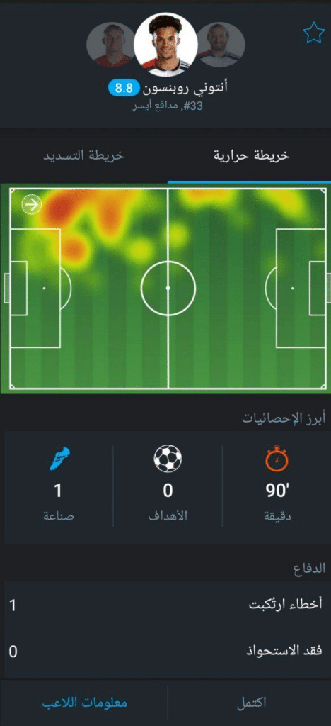 وعلى الرغم من فوز ليفربول، إلا أن روبنسون لاعب فريق فولهام حصد أفضل لاعب في مباراة ليفربول ضد فولهام بقيمة 8.8، بعدما صنع هدفًا واحدًا خلال اللقاء، إلى جانب صناعة فرصة أخرى، ووصلت دقة تمريراته إلى نسبة 70%.