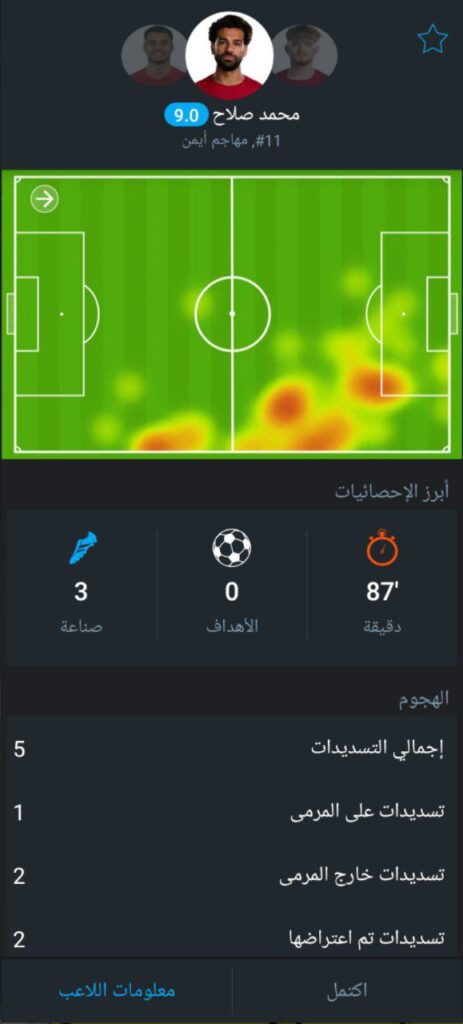 جناح الريدز نجح في صناعة ثلاثية ليفربول في المباراة، بالإضافة إلى أنه قدم 60 تمريرة صحيحة من أصل 66 تمريرة بمعدل نجاح وصل إلى 91%.