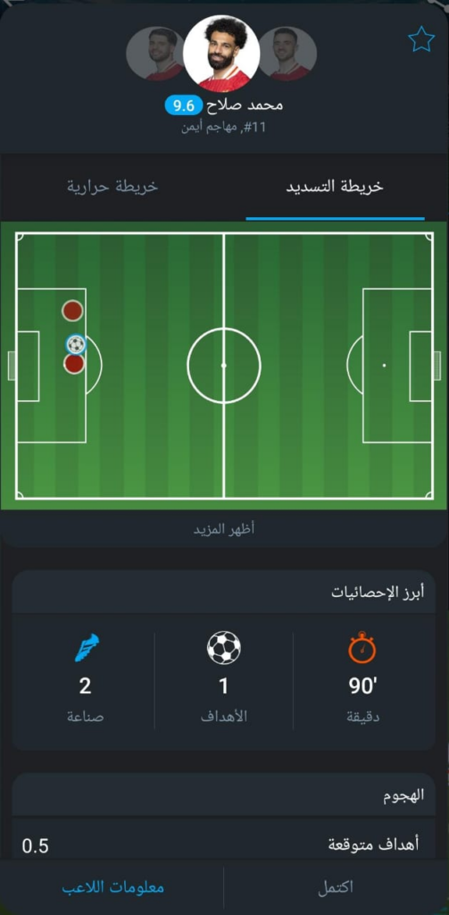 خط الهجوم: محمد صلاح 9.6 – ديوجو جوتا 6.2 – لويس دياز 8.6.