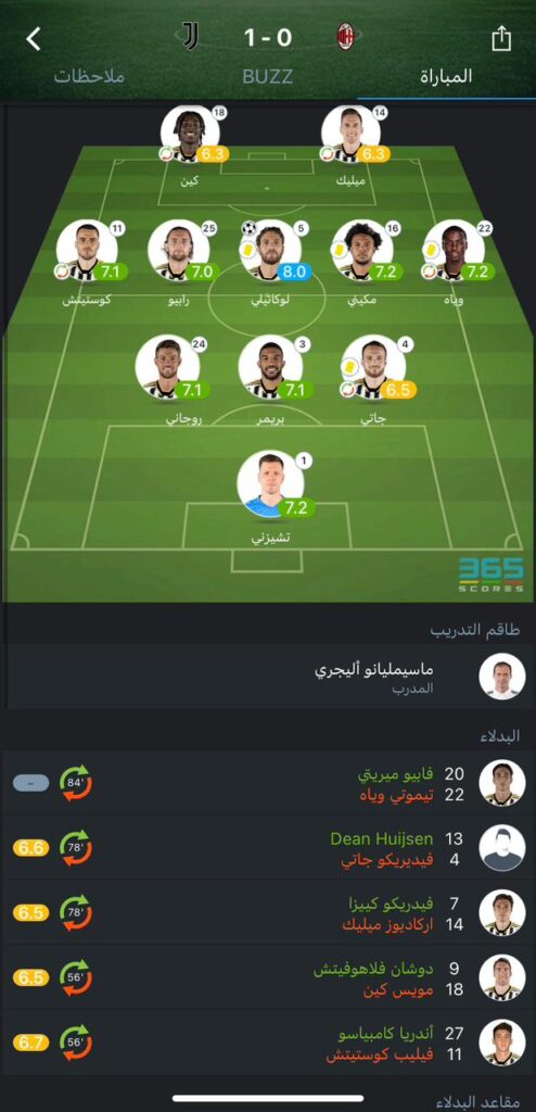 أندريا كامبياسو 6.7 – دوشان فلاهوفيتش 6.5 – فيديريكو كييزا 6.5 – هويسين 6.6 – فابيو ميريتي