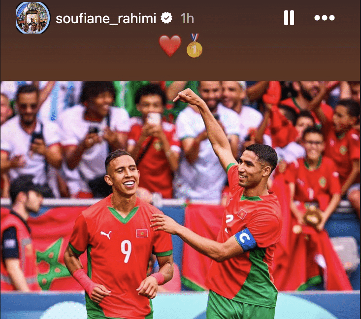 ونشر سفيان رحيمي نجم العين، صورة عبر منصة انستجرام، تجمعه بأشرف حكيمي، مع إضافة رمزين تعبيريين، يُشيران إلى أحقية نجم باريس سان جيرمان بالكرة الذهبية الإفريقية.