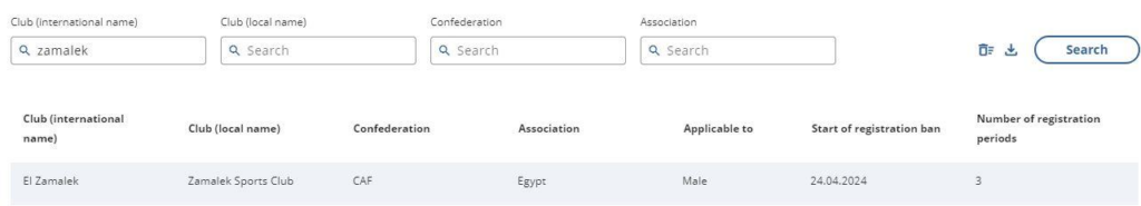 وحسب الخاصية الجديدة التي أطلقها الاتحاد الدولي لكرة القدم، لكشف الأندية الموقوفة عن القيد، أعلن فيفا اليوم الاثنين بشكل رسمي، إيقاف النادي الأبيض عن القيد لمدة 3 فترات بسبب مستحقات المغربي خالد بوطيب.