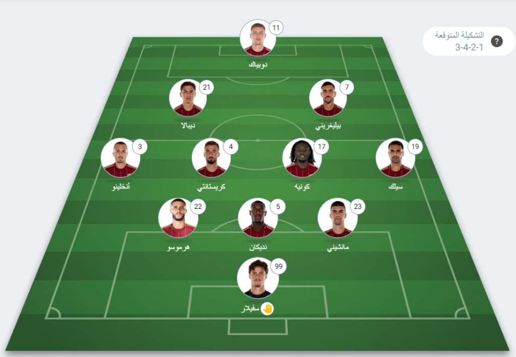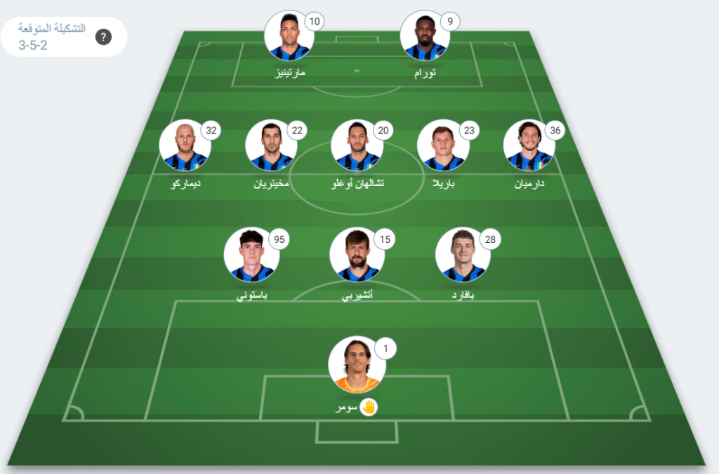 خط الوسط: دراميان، نيكولو باريلا، تشالهان أوغلو، هنريخ مخيتاريان، فيديريكو ديماركو.