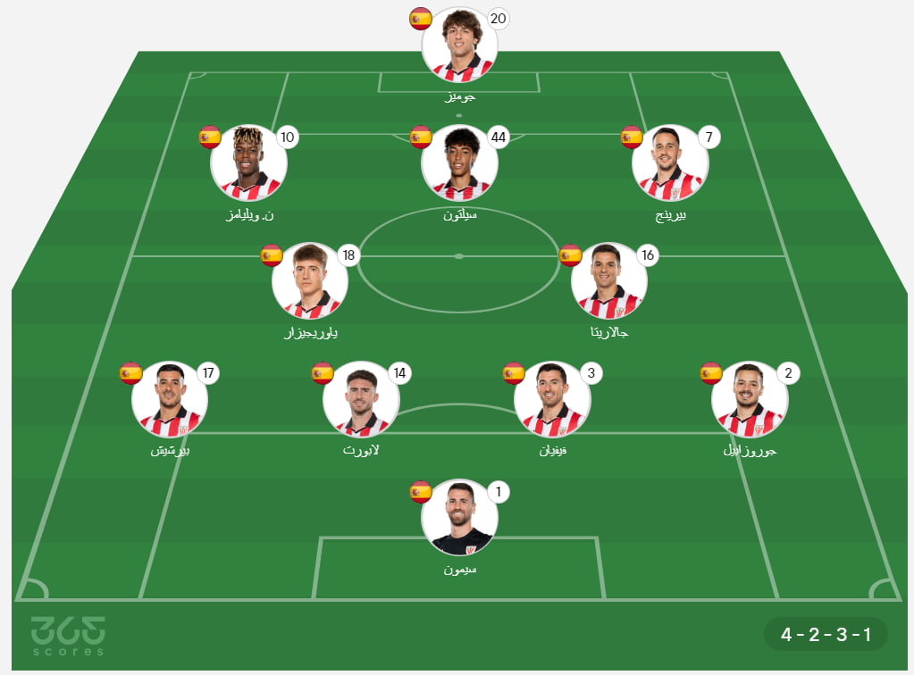 - خط الدفاع: يوري برشيش، إيمريك لابورت، دانيال فيفيان، أندوني جوروزابيل.