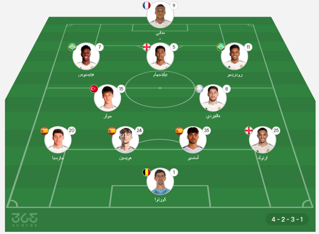 - خط الوسط الهجومي: رودريجو جوس، جود بيلينجهام، فينيسيوس جونيور.