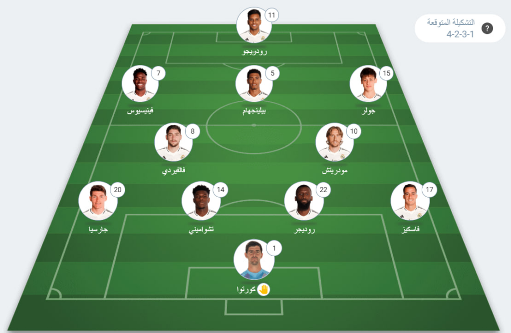 - خط الوسط الهجومي: أراد جولر، جود بيلينجهام، فينيسيوس جونيور.