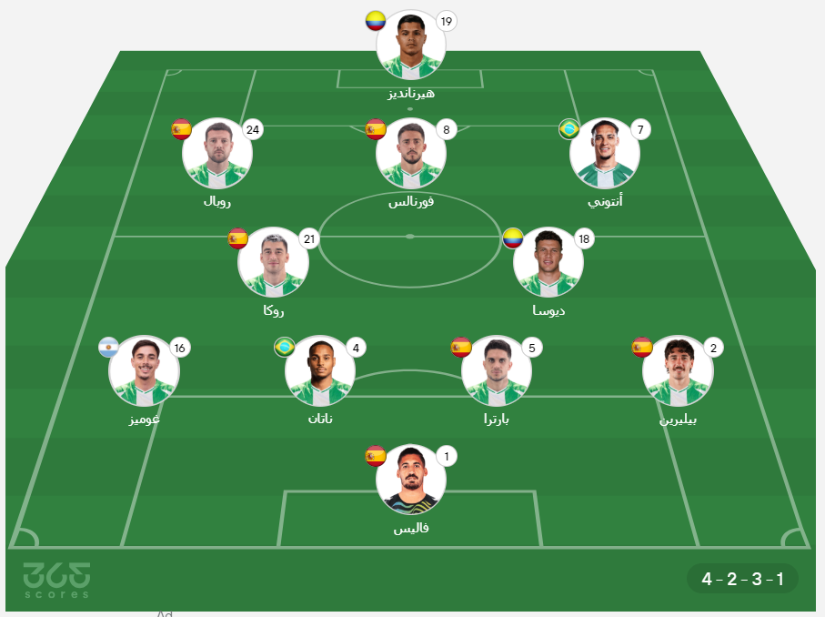 - خط الوسط الهجومي: أنتوني، بابلو فورنالس، رويال.