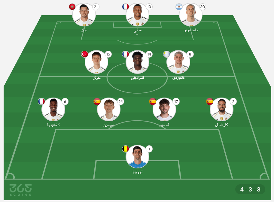 • خط الهجوم: إبراهيم دياز، كيليان مبابي، فرانكو ماستانتونو.
