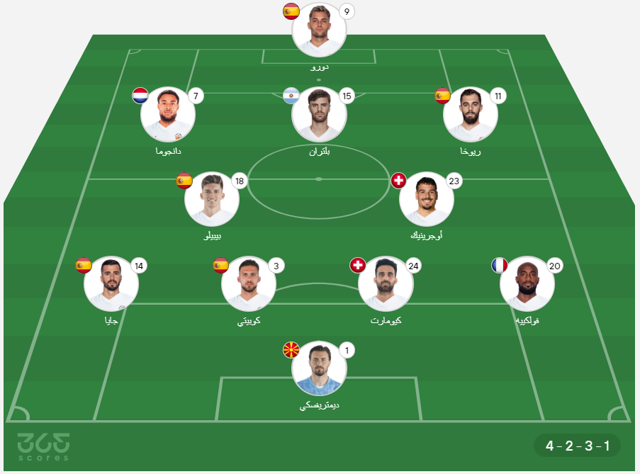 • خط الدفاع: إدواردو كامافينجا، دين هويسين، راؤول أسينسيو، داني كارفاخال.