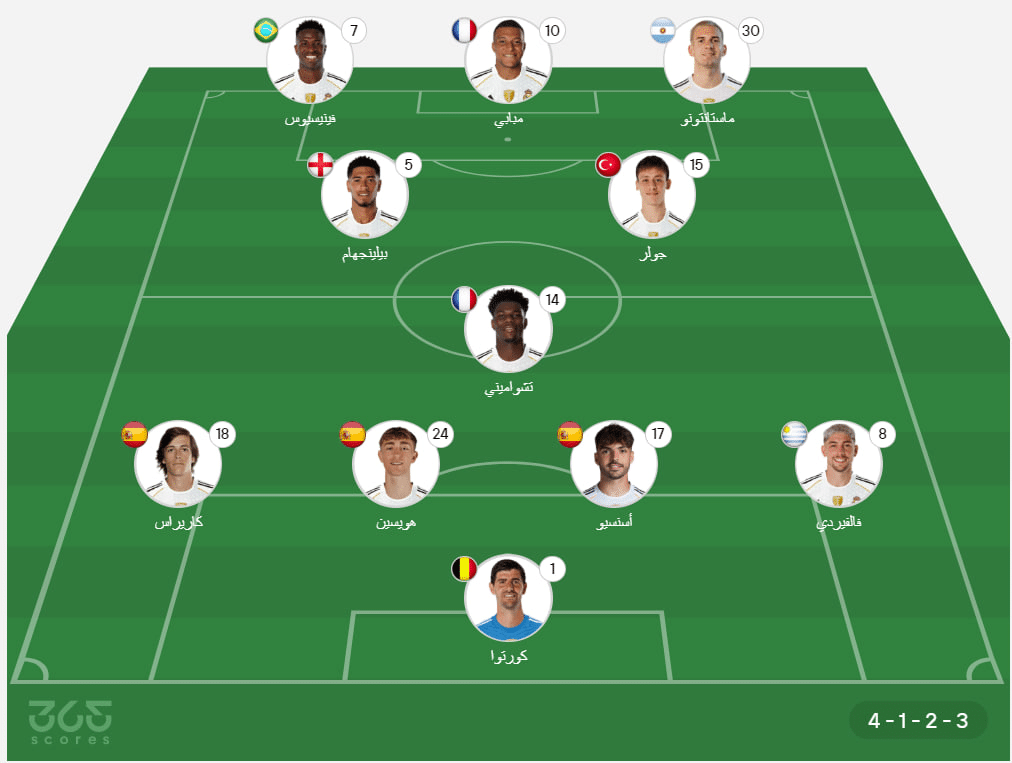 • خط الهجوم: فينيسيوس جونيور، كيليان مبابي، فرانكو ماستانتوينو.