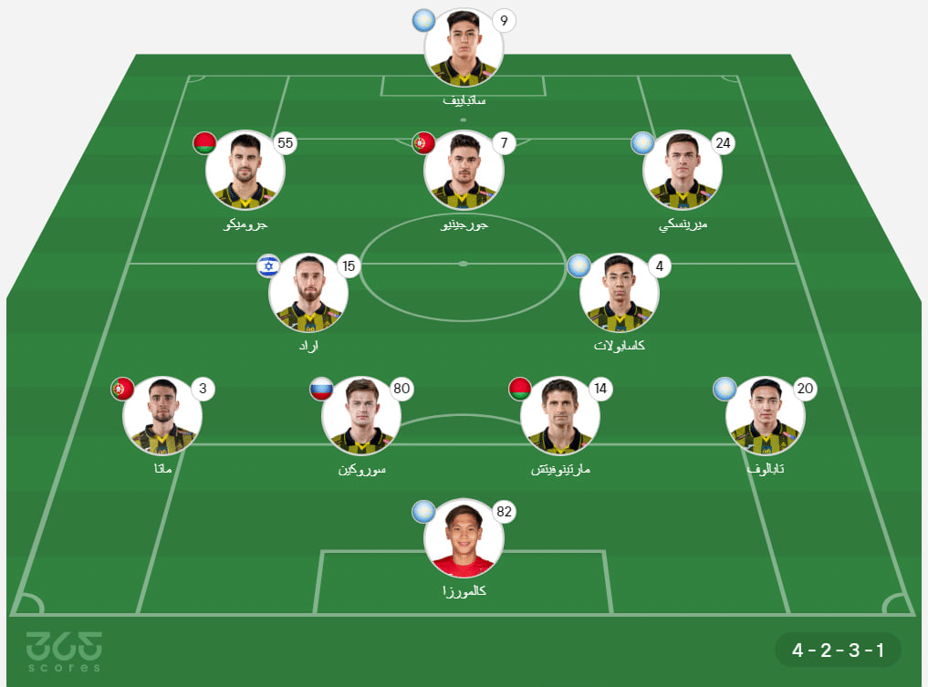 • خط الدفاع: لويس ماتا، إيجور سوروكين، الكسندر مارتينوفيتش، إركين تابالوف.