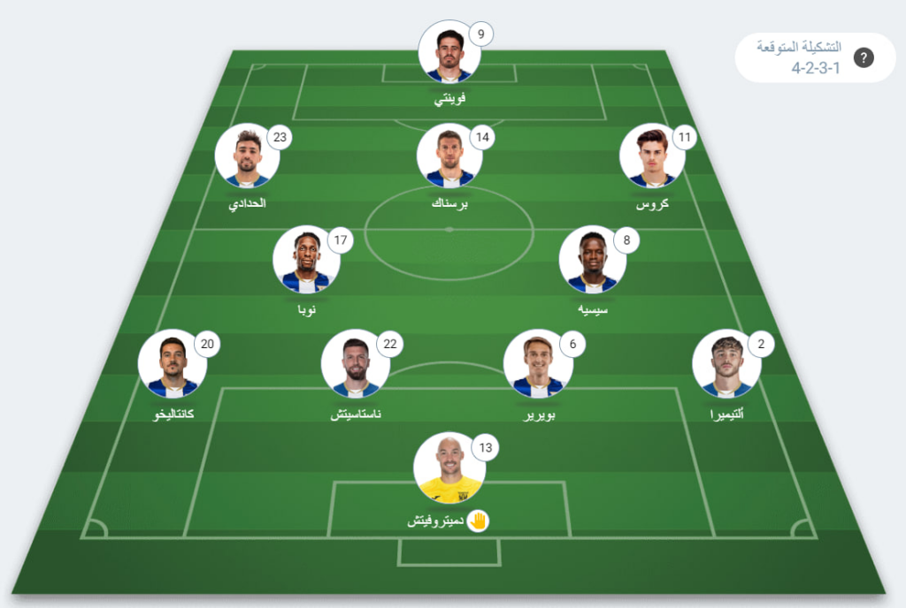 - خط الدفاع: أدريان ألتيميرا، بويرير، ماتيا ناستاسيتش، إيفان كانتاليخو.