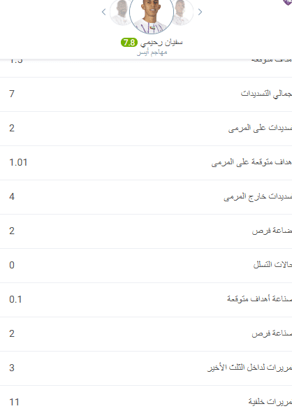 وسدد سفيان رحيمي 7 تسديدات طوال المباراة، بينهم تسديدتين على المرمى.