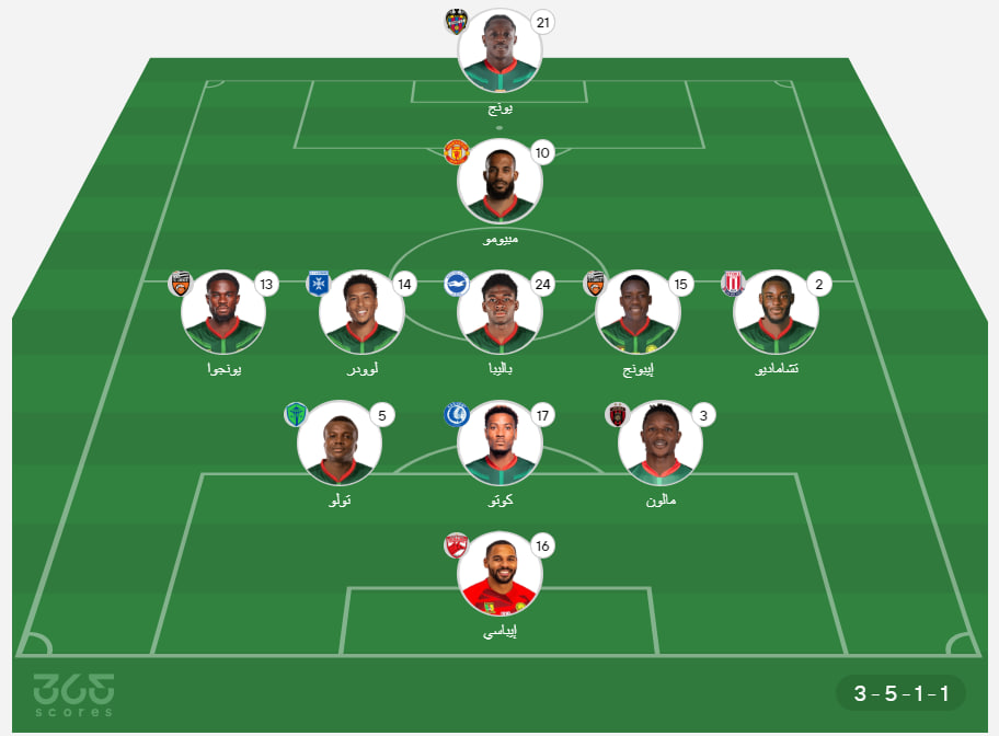 - خط الهجوم: بريان مبيومو، إيتا يونج.