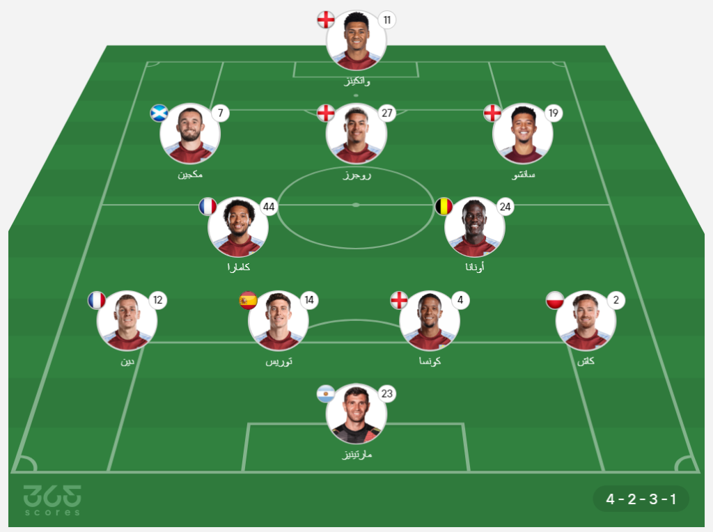 - خط الهجوم: جادون سانشو، أولي واتكينز، ليون بايلي.
