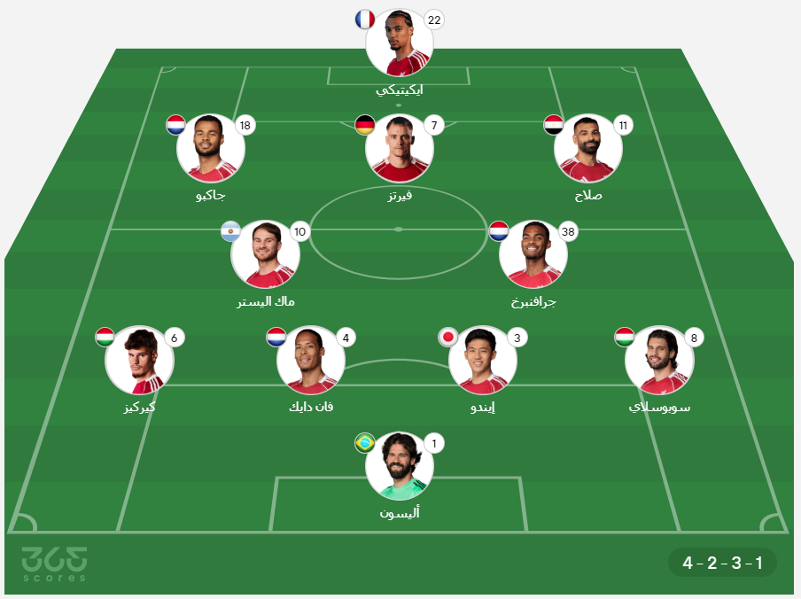 - خط الوسط الهجومي: كودي جاكبو، فلوريان فيرتز، محمد صلاح.