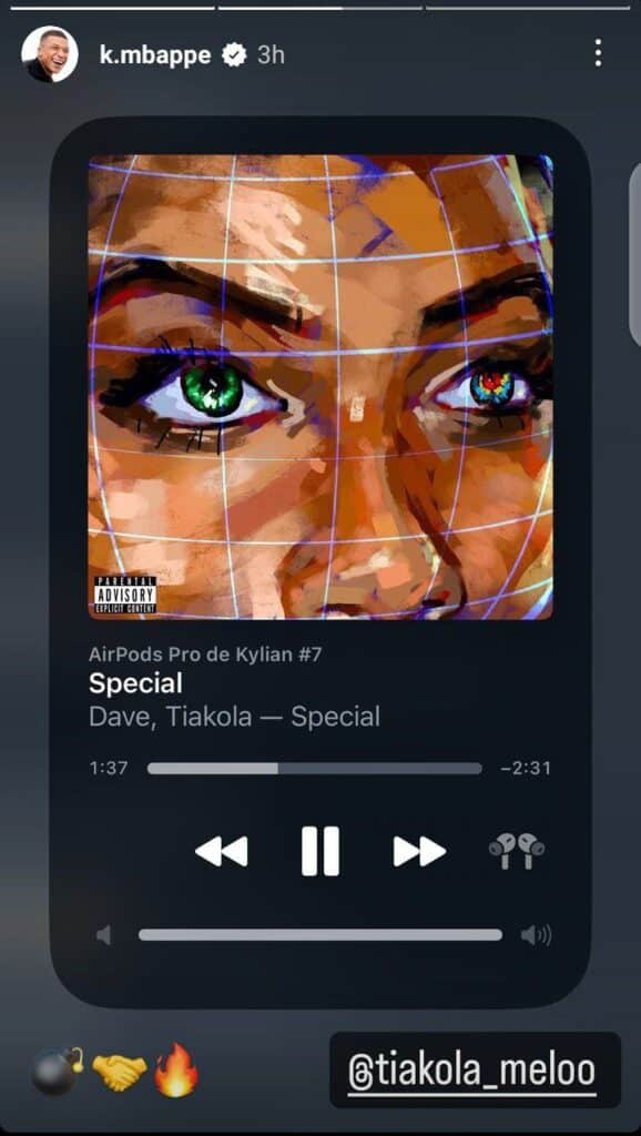 ونشر الفرنسي أغنية باللغة الإنجليزية عبر ستوري انستجرام جاءت في أول مقاطعها كلمات: “أنا رجل من الصفوة، توقيعي لفريق أخر غالي الثمن مثل صفقة مويسيس كايسيدو إلى تشيلسي”.