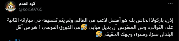 وتابع آخر ساخرًا: “إذن هذا باركولا، المفترض أفضل لاعب في العالم والآن لا يتم تصنيفه كلاعب في المباراة الثانية على التوالي، ومن المفترض أن يكون بديل مبابي في الدوري الفرنسي هو أقل اللاعبين نموًا وسنرى وجهه الحقيقي”.