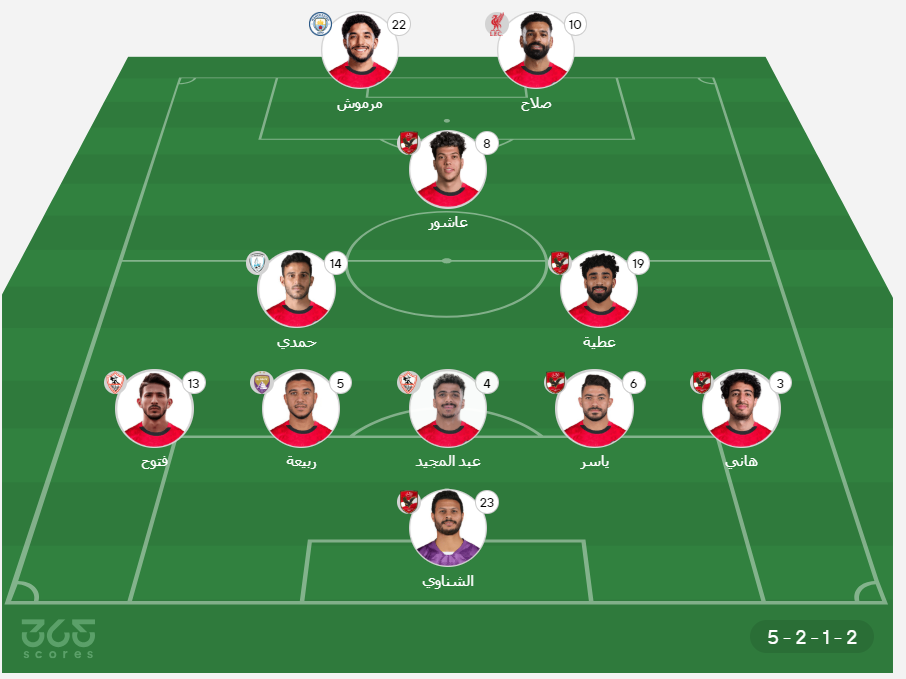 - خط الهجوم: عمر مرموش، محمد صلاح.