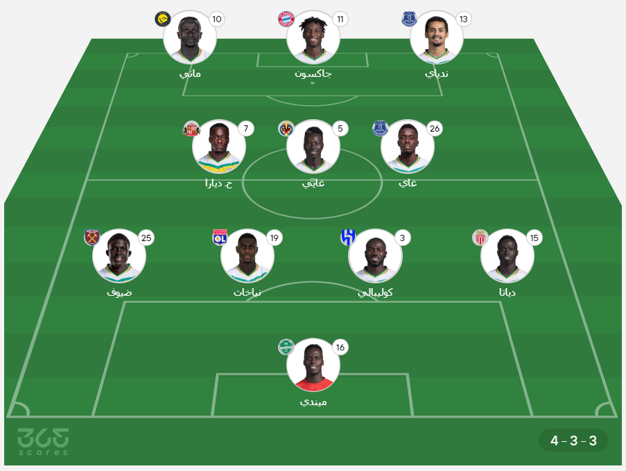 - خط الدفاع: كريبين دياتا، كاليدو كوليبالي، موسى نياخات، الحاج مالك ضيوف.