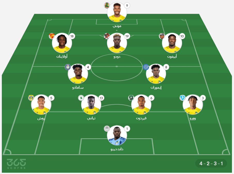 - خط الوسط الهجومي: جونيور أولايتان، دوكو دودو، تويسون أييجون.