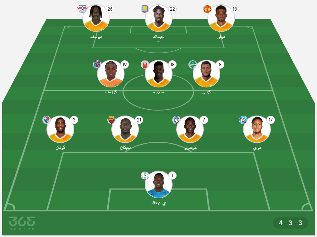 - خط الهجوم: عثمان ديوماندي، إيفان غيساند، أماد ديالو.