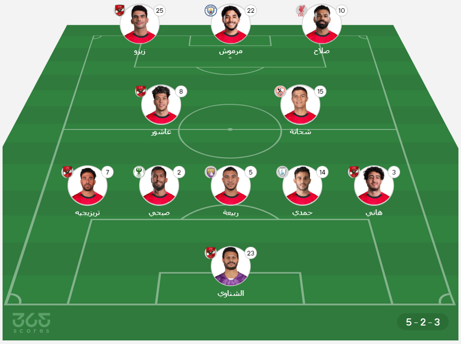 - خط الوسط: إمام عاشور، محمد شحاتة، حمدي فتحي.